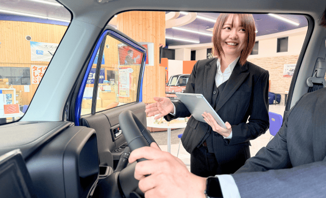 ショールームでの商談や訪問活動を通じて、お客様に直接車を販売したり、ご来店頂く為の促進活動、居心地の良いお店作り、親切で丁寧な対応、購入後のアフターフォロー等に取り組み。